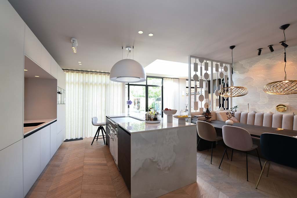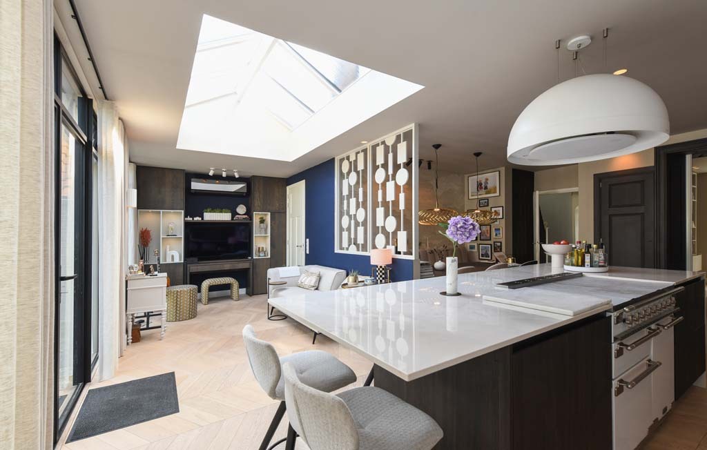 Je kunt in een verbouwing als dit niet alles voorzien. Daarom is het extra knap dat Krimp samen met de onderaannemers volgens planning heeft opgeleverd. Tijdens deze drie maanden, waarin we met ons gezin elders woonden, hadden we wekelijks een vast overlegmoment met Maykel en met uitvoerder Jan. Daardoor kun je steeds alles tijdig doornemen. Zo ontstond er een mooie wisselwerking tussen ons en Krimp. Voor een grote verbouwing als dit was er bij ons relatief weinig stress. Het is ons absoluut meegevallen en dat is grotendeels aan Krimp te danken. Het volgende project staat daarom alweer op stapel: de tuin én een tuinhuis. Bij dat laatste hebben we Krimp alweer betrokken.”
