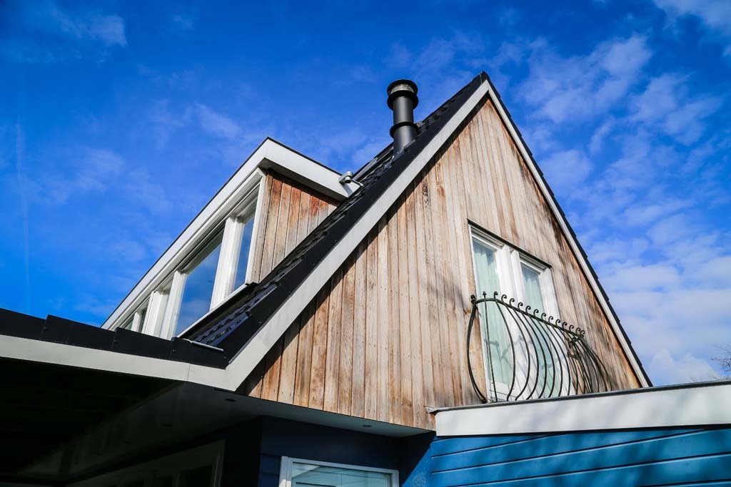 Aannemersbedrijf Krimp is sinds 1998 betrokken bij diverse kleine en grote verbouwingen van dit houten huis aan het water. Bijzonder is dat alle materialen over het water worden aan- en afgevoerd.