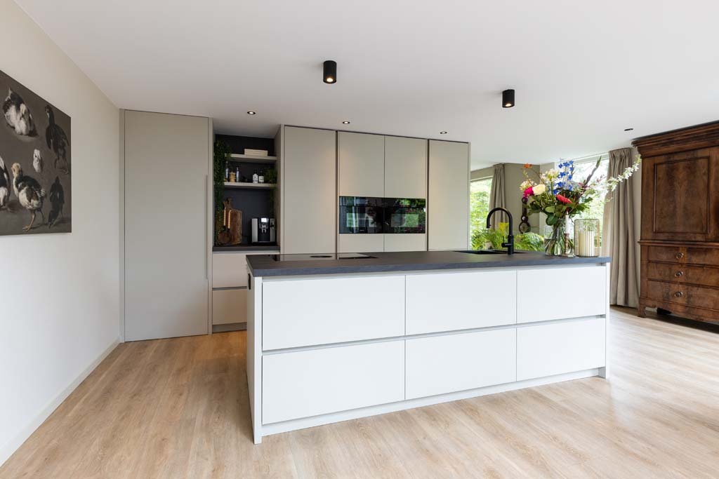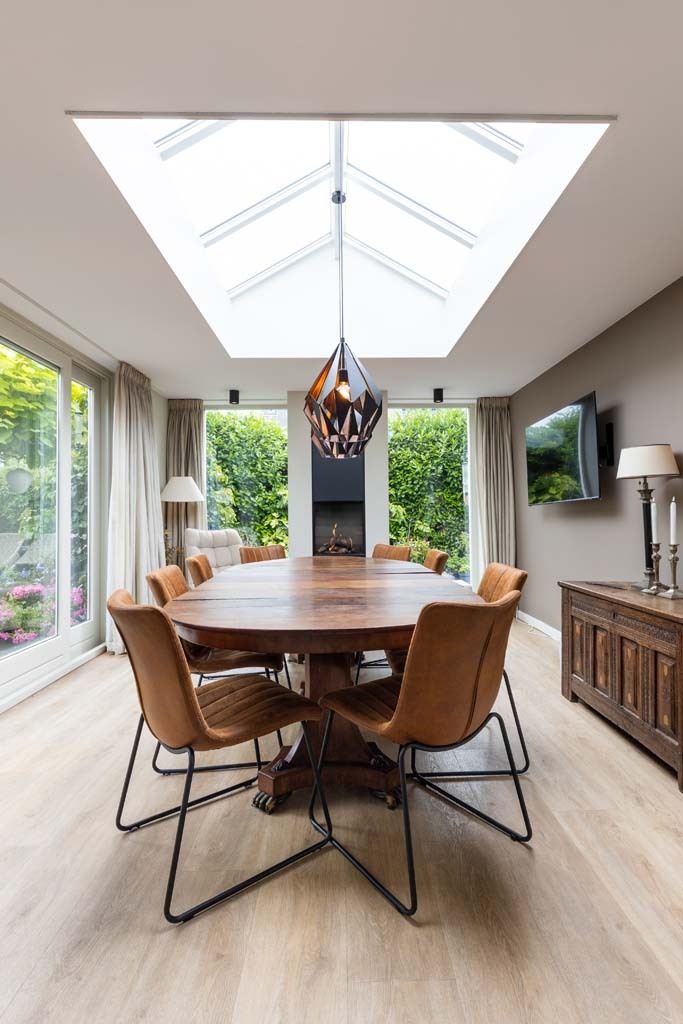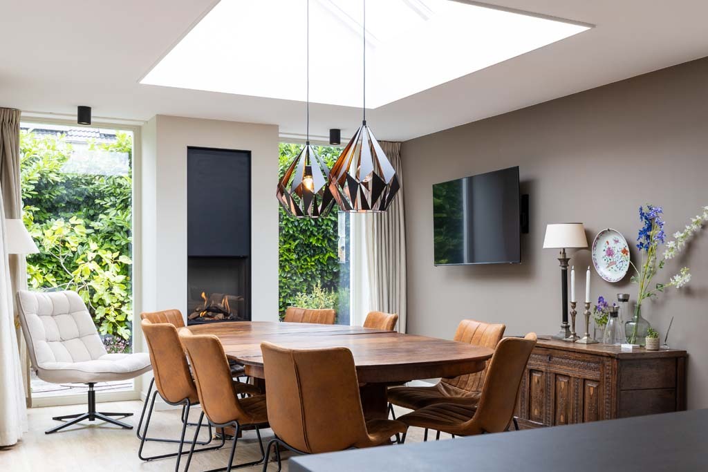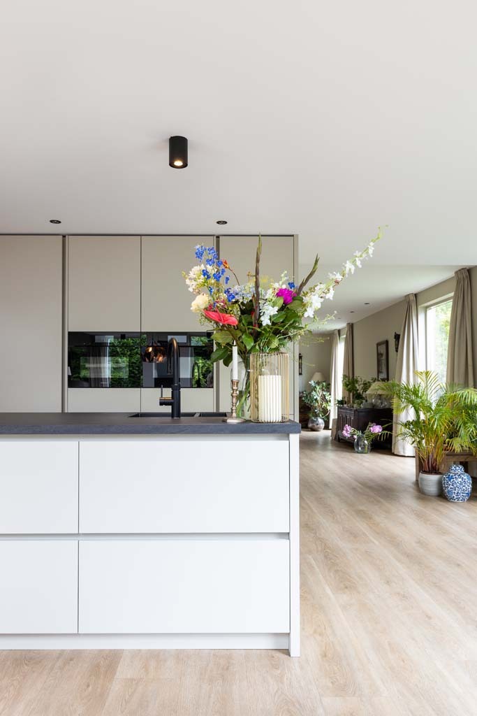Als je gaat verbouwen, moet je ook ergens een grens trekken. Dat was bij ons net zo. Aanvankelijk hadden we een streep gezet door het vervangen van de bestaande pui. Achteraf zijn we zo blij dat we ons hebben laten overtuigen om ook de vervanging daarvan bij deze verbouwing mee te nemen. De nieuwe pui geeft namelijk zoveel meer licht en ruimte. Dat maakt het helemaal af. De plek waar we wonen is net zo heerlijk als voor de verbouwing, maar ons huis heeft een metamorfose ondergaan; het zou niet misstaan in een interieurboek! We hebben beneden gewoon een nieuw huis gekregen, waar we ontzettend blij mee zijn.”