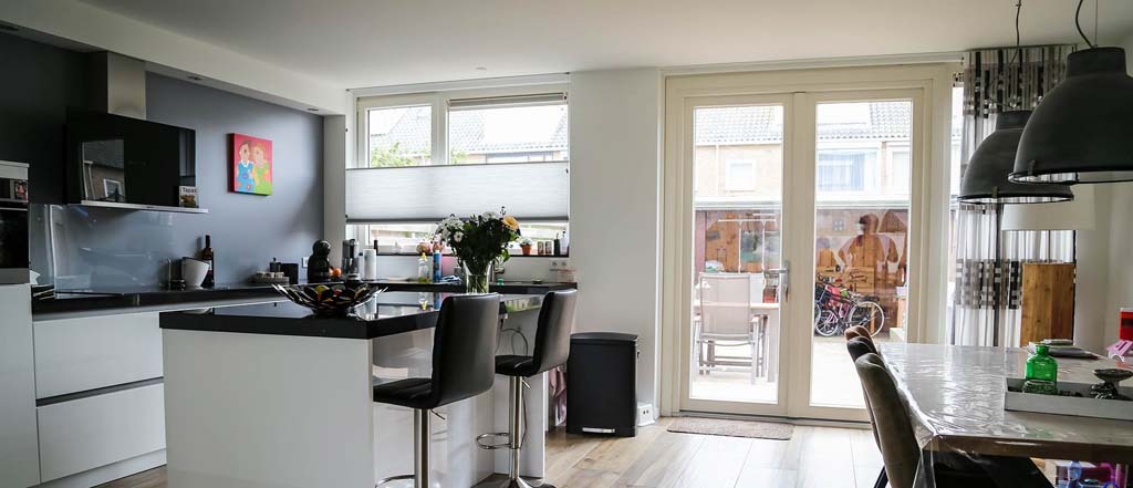 Om meer ruimte op de benedenverdieping te creëren, lieten deze woningeigenaren in Uithoorn hun woning uitbouwen door aannemersbedrijf Krimp. Een fantastisch resultaat en goede investering vinden zij.